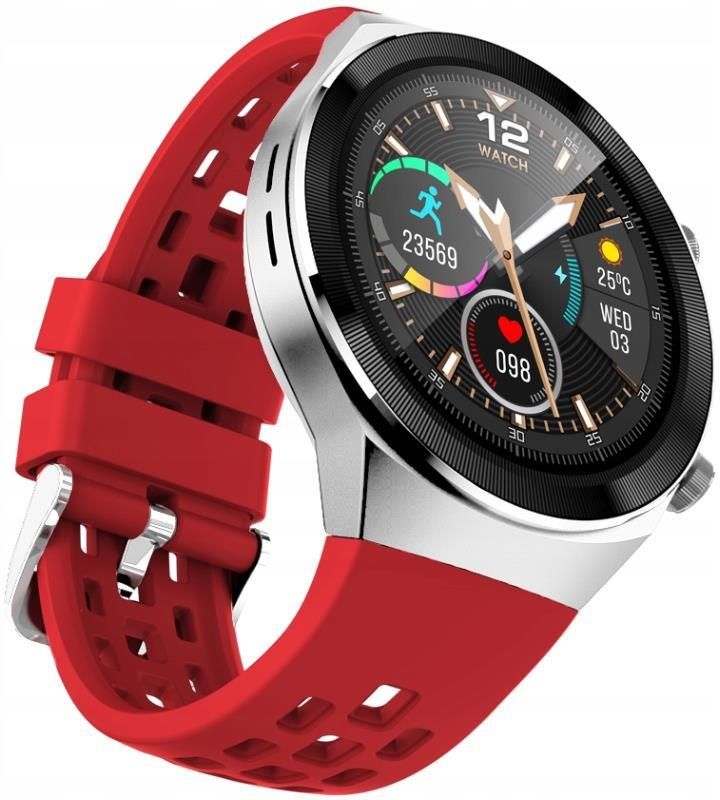 Smartwach Rubicon RNCE68 RED Smartwatch Rubicon RNCE68 cechuje się niezwykle wytrzymałą kopertą wykonaną z lekkiego tworzywa sztucznego, która daje wysoki komfort w pracy oraz podczas uprawiania sportu. W modelu tym zastosowano dodatkowo silikonowy pasek. Jest on niezwykle odporny na trudne warunki atmosferyczne, możesz z niego korzystać podczas uprawiania sportu. Smartwatch ten posiada duży 1,3-calowy dotykowy wyświetlacz HD o rozdzielczość 240 × 240 pikseli. Obsługa zegarka przebiega za pomocą dotyku ekranu oraz przy użyciu dwóch guzików imitujących koronki tradycyjnych zegarków analogowych.Oficjalna Polska dystrybucja! 10 motywów ekranu głównego! Zastosowana nowoczesna technologia High Definition w wyświetlaczu gwarantuje wysokiej jakości obraz z maksymalną ilością barw oraz płynną animację w ekranie. Funkcje: 10 różnych motywów do wyboru Prowadzenie rozmów za pomocą Bluetooth Krokomierz (liczy kroki, kalorie i przebyty dystans) Tętno (posiada historie wyników) Pomiar tlenu we krwi Ciśnieniomierz EKG Monitor snu Sterowanie muzyką Sterowanie aparatem fotograficznym 7 różnych trybów sportowych Stoper Połączenia przychodzące Powiadomienia Facebook, SMS, WhatsApp, Skype, Twitter i inne Przypomnienie alarmu Przypomnienie o trybie siedzącym Pogoda Budzik Podnieś, aby włączyć (włączenie zegarka podczas podniesienia ręki lub obrócenia nadgarstka) Znajdź urządzenie Energooszczędny Bluetooth 3.0 + 4.0 (możliwość wyłączenia funkcji BT call z pozycji smartfona) Aplikacja FunDo na telefon! Jest to aplikacja na telefon, dzięki której można ustawić wszystkie potrzebne nam parametry swojej aktywności. Każda czynność jest automatycznie zapisywania w pamięci i dostępna do wglądu. Zapisywane jest wiele czynników jak i różne możliwości ułatwiające obsługę jak, powiadomienia o połączeniach i wiadomości, spalanie kalorie, zdalne robienie zdjęć, jakość snu, przebyty dystans czy pomiar pulsu, zmiana wyglądu i wiele innych. Aplikacja w języku polskim.Połączenie Bluetooth Call Po sparowaniu smartwatch Rubicon RNCE68 z twoim smartfonem możesz bezproblemowo odbierać połączenia telefoniczne oraz je wykonywać. Wbudowany głośnik oraz mikrofon pozwala rozmawiać bez konieczności wyciągania telefonu komórkowego. Oprócz tego zegarek posiada książkę telefoniczną oraz cyfrową klawiaturę. W ten sposób możesz wybierać numer, do którego chcesz dzwonić z własnego smartwatcha. 7 trybów sportowych LUBISZ SPORT I DBASZ O SYLWETKĘ I KONDYCJĘ? TEN SMARTWATCH CI POMOŻE! Zegarek idealny dla aktywnych osób, którzy czas wolny spędzają na uprawianiu sportu. Ten model posiada 7 różnych trybów, które pozwolą w łatwy sposób kontrolować trening lub zabawę sportową. Pozwoli ci zaplanować i kontrolować czas, dystans, spalanie kalorii i efekt treningu. Zadbaj o swoje zdrowie Każdy chce być zdrowy jak najdłużej, ten smartwatch w tym pomaga. Możesz mierzyć tętno, ciśnienie, natlenienie krwi oraz EKG serca. Pomiar tętna można określić, w jakim czasie chcemy, żeby był dokonywany i przez jaki długi czas. Można te funkcje uruchomić również z poziomu zegarka. Opis produktu: Procesor: MTK 2502 D Bateria: 600mA, litowo-polimerowa Kompatybilność: Z systemem Android 5.1 i nowszy oraz iOS 9.0 i nowszy Bluetooth: 4.0 Tarcza: Wyświetlacz dotykowy, antyodblaskowa,HD 1.3". Rozdzielczość: 240*240 Koperta: tworzywo sztuczne, pokryte PVD, o podwyższonej odporności na ścieranie Pasek: Pasek silikonowy Szkiełko: Mineralne o podwyższonej odporności na zarysowania i przypadkowe uderzenia Wodoszczelność: IP67 Technologia PVD - Metoda napylania powłoki zegarka, pozwalająca uzyskać jednolitą, gładką powierzchnię o podwyższoną odporność na ścieranie Antyalergiczny: Tak - nie zawiera niklu Wymiary w mm: Koperta: 46 Tarcza: 44 Grubość: 13,8 Pasek: 24 Obwód: 140-235 Kolorystyka: Koperta: srebrna Pasek: czerwony