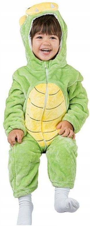 STRÓJ DINOZAURA DLA DZIECI STRÓJ DINOZAUR W skład stroju wchodzą: kombinezon, kaptur Długość kombinezonu: 84 cm Szerokość pod pachami: 34 cm Szerokość w pasie: 34 cm Długość rękawa: 36 cm Długość nogawki: 35 cm Rozmiar: 92/104 cm Materiał: 100% poliester Producent: Godan
