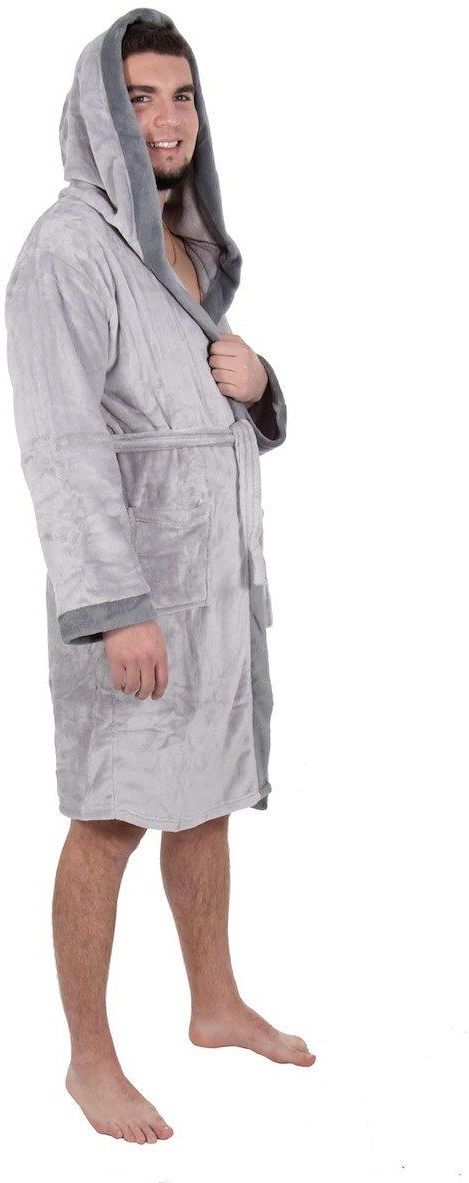 Szlafrok Męski Z Kapturem I Paskiem Rozm. L/Xl Polarowy Szary Kętrzyn