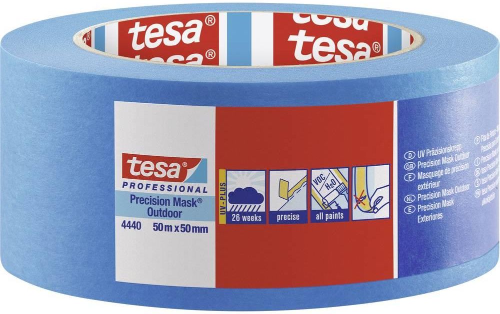 tesa Precision crepe® 4440 na zewnątrz — do płaskich i ostrych krawędzi malowanych i lakierowanych Profesjonalne prace malarskie i lakiernicze w plenerze 6 miesięcy odporny na promieniowanie UV Idealny do ostrych krawędzi kolorów Nadaje się również do szorstkich powierzchni Lekkie prace porządkowe …