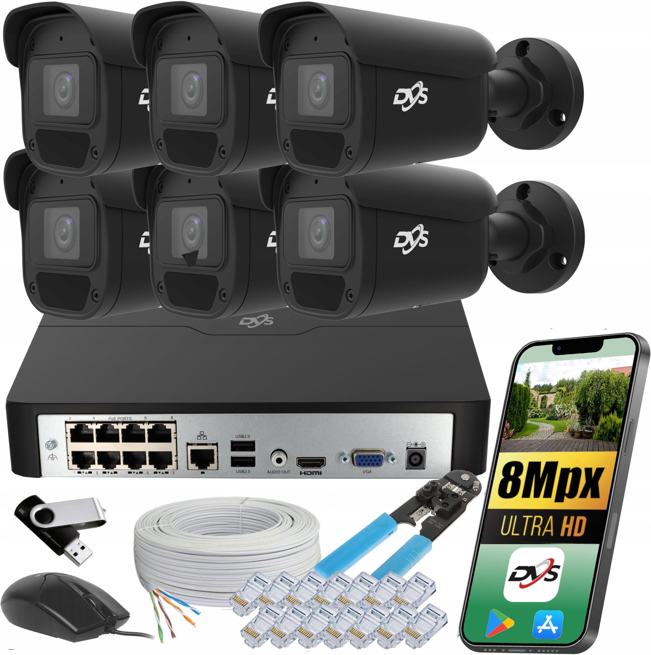 • ZESTAW MONITORINGU 6 KAMERY CZARNE DVS ANALITYKA