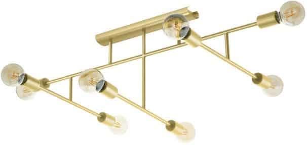 Lampa sufitowa serii BELSIANA 1. Metalowa rama ze szczotkowanego mosiądzu połączona jest z ośmioma widocznymi oprawami oświetleniowymi E27. Dzięki trzem dolnym, regulowanym ramionom można indywidualnie wpływać na optykę lampy, a tym samym optymalnie oświetlić przestrzeń mieszkalną. Plafon Belsiana …