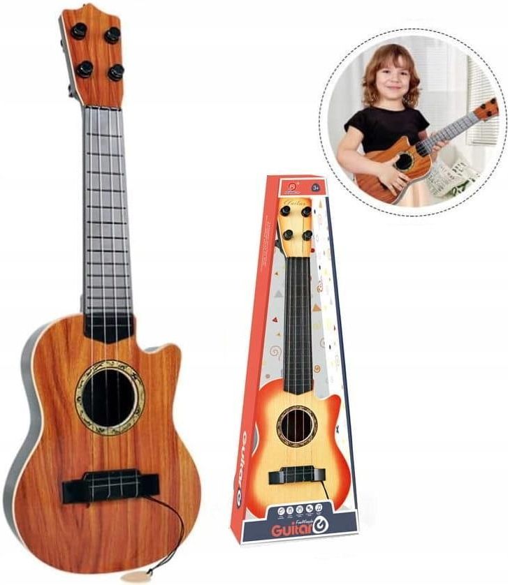 GITARA DLA DZIECI UKULELE INSTRUMENT 43CM SUPER GITARA DLA MAŁEJ ARTYSTKI I MAŁEGO ARTYSTY Pozwól na rozwinięcie kreatywności i talentu u dziecka! Zabawka posiada struny Gabaryt gitary jest pomyślany o najmłodszych, dzięki czemu jest łatwy w trzymaniu i graniu Wykonana z plastiku imitującego drewno Gitara będzie idealnym prezentem dla dzieci kochających muzykę oraz chcących szlifować swoje pierwsze gitarowe chwyty! Wymiary opakowania: 48 x 17 x 6 cm Certyfikat jakości i bezpieczeństwa CE i EN 2 kolory, towar wysyłamy losowo. Ładne wykonanie zabawki Rozrywka, która rozwija kreatywność Kod EAN: 5904326450363 Kod towaru: ZG0363