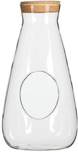 Duża, ozdobna, szklana butelka w kształcie stożka z korkiem marki IDEAS 4 Seasons. Wykonana została z cienkiego, przejrzystego, białego szkła, z korkową pokrywką. Wysokość słoika z pokrywką 27 cm. W butelce został wycięty ozdobny otwór o wymiarach: 8 cm x 6,5 cm. Można go wykorzystać w wieloraki sposób, między innymi jako pojemnik do wykonania "lasu w szkle". Doda odrobinę uroku każdemu pomieszczeniu. Kolejnym zastosowaniem jest wykorzystanie go w toaletce jako miejsce na przechowywanie kosmetyków, akcesoriów do włosów.Może posłużyć również jako ciekawy pojemnik do przechowywania np. cukierków. Słoik przeznaczony do mycia ręcznego, nie nadaje się na wysokie temperatury (wrzątek). Las w słoiku jest obecnie bardzo modną dekoracją, która uroczo ozdobi każde pomieszczenie. Dzięki tej butelce sami możemy stworzyć słój do mini instalacji florystycznej, który przykuje niejedno spojrzenie. Słoik nie zawiera żadnych dodatków w postaci roślin i ozdób. Wzór: 29436 butelka Produkt 1 x słoik 1 x korek Wymiary wysokość z korkiem 27 cm średnica górna 7,5 cm średnica dolna 14 cm wymiary otworu: 8 cm x 6,5 cm Materiał szkło korek Użytkowanie ozdobne