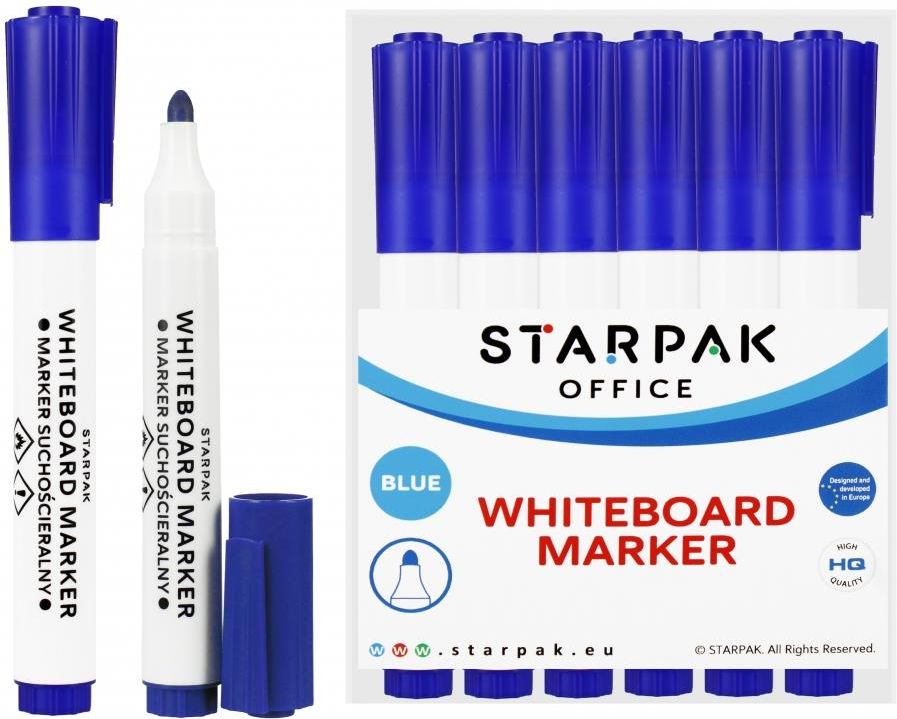 Starpak Marker Suchościeralny Okrągły Niebieski A12 524568 Markery suchościeralne można też używać do pisania na flipchartach, papierze, kartonie. Są przydatne w szkole, biurze, domu. Zalety produktu: marker suchościeralny głównie do pisania po tablicach suchościeralnych, tusz można zmazać za pomocą szmatki lub gąbki bez zostawiania śladów. Marker suchościeralny STARPAK z okrągłą końcówką w kolorze niebieskim, szerokość linii pisania ok 2,5mm. Nieodpowiednie dla dzieci poniżej 3 roku życia. Zapoznaj się również z innymi produktami STARPAK dedykowanym dla szkoły i biura!
