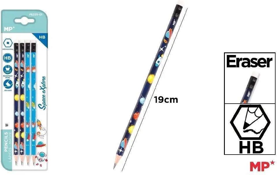 Ołówek z gumką HB 4 szt./blister, Kosmos MP Wymiary: 250x80 mm Opakowanie: blister