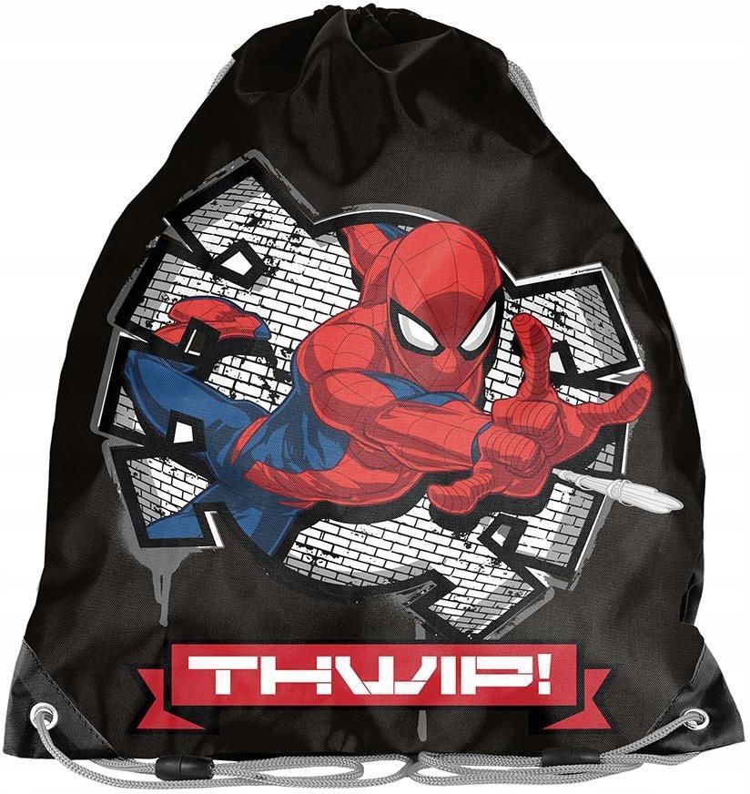 Worek szkolny na buty Paso worko plecak Marvel Spiderman dla chłopca Jednokomorowy worek o szerokim zastosowaniu. Świetnie sprawdzi się jako worek na obuwie, strój gimnastyczny lub drobny plecaczek. Model zamykany jest podwójnym ściągaczem, dzięki czemu dostęp do zawartości jest łatwy i szybki. Sznurki wyposażone zostały w przerywacze zapewniające bezpieczeństwo w przypadku splątania. Podwójne sznureczki umożliwią noszenie worka na plecach lub na ramieniu. Wymiary: 38 x 34 cm Materiał: poliester
