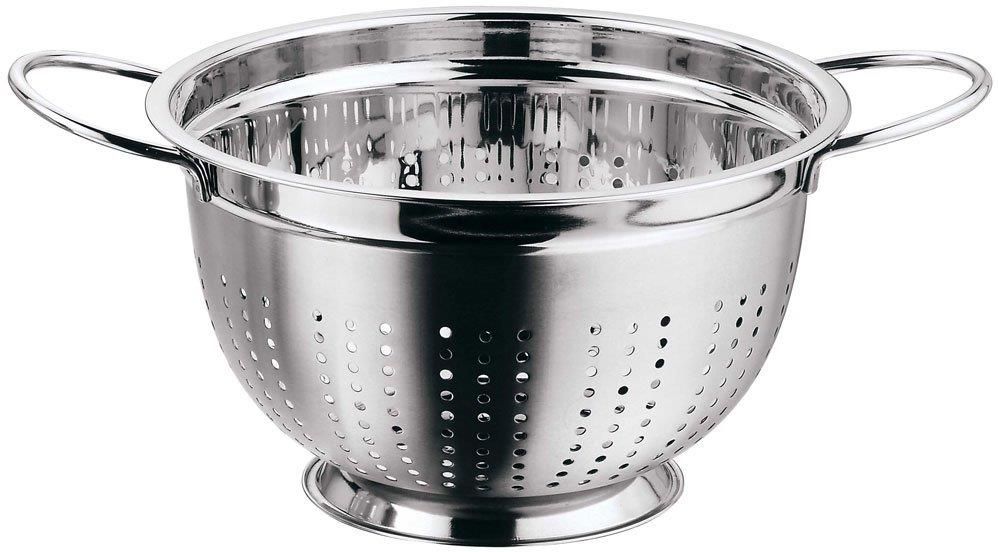 Cedzak stalowy Z uchwytami German Ambition 24 cm Cedzak stalowy z serii German marki Ambition o średnicy 24 cm. Wykonany został ze stali nierdzewnej wysokiej jakości. Niezbędny element w każdej kuchni. Świetnie nada się do płukania wszelkich produktów spożywczych. Posiada podstawę, dzięki czemu jest stabilny i nie przewraca się. Duże, wygodne uchwyty umożliwiają wygodne przenoszenie. Cechy produktu wykonany ze stali nierdzewnej, posiada duże uchwyty oraz stabilną podstawę, kolor srebrny, charakteryzuje się drobnymi otworami, idealny do odcedzania warzyw i owoców, niezbędny element w każdym domu. Wymiary produktu średnica 24 cm