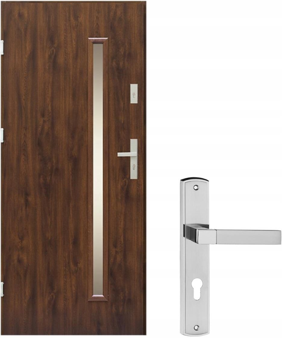 Drzwi zewnętrzne metalowe prawe 90cm Szklenie mleczne, powłoka PVC + klamka Jowisz Spin to solidne i funkcjonalne drzwi zewnętrzne, idealne do budynków jedno- i wielorodzinnych, pomieszczeń przemysłowych oraz lokali użyteczności publicznej. Dzięki metalowej konstrukcji z powłoką PVC oraz drewnianym wzmocnieniom drzwi zapewniają wysoką stabilność i odporność na uszkodzenia. Klasyczny wzór, wybór przeszkleń (mleczne lub Stopsol) i szeroka gama kolorystyczna pozwalają dopasować model do różnych stylów elewacji. W zestawie znajduje się również klamka drzwiowa Beta w kolorze nikiel satyna, co czyni komplet gotowym do montażu. Zalety Odporna na warunki atmosferyczne konstrukcja stalowa z okleiną PVC Możliwość zastosowania w różnych typach budynków i pomieszczeń Estetyczne szklenie (Stopsol lub mleczne) zapewniające prywatność Drewniane wzmocnienia w miejscach zawiasów i zamków Kompletna konfiguracja – drzwi + klamka Beta + akcesoria montażowe Klamka o uniwersalnym stylu – pasuje do nowoczesnych i klasycznych wnętrz Łatwy montaż dzięki precyzyjnemu wykonaniu i systemowi mocowania Parametry Typ: Drzwi zewnętrzne, wewnątrzlokalowe Rodzaj: Jednoskrzydłowe Model: Jowisz Spin Seria: Jowisz Producent: Doorpol Materiał wykonania: Stal z powłoką PVC Grubość skrzydła: 56 mm Szerokość skrzydła: 90 cm Kierunek otwierania: Prawe Szklenie: Do wyboru – szyba mleczna lub Stopsol Kolorystyka: Różne warianty dopasowane do stolarki okiennej Zastosowanie: Domy mieszkalne, lokale użytkowe, obiekty przemysłowe Typ klamki: Klamka drzwiowa na długim szyldzie Rozmiar przebicia klamki: 72 mm (na wkładkę) Materiał klamki: Stop cynku i aluminium Kolor klamki: Nikiel satyna Sprężyna powrotna – samoczynne wracanie do pozycji poziomej Podwójny docisk imbusowy – łatwiejszy i trwalszy montaż