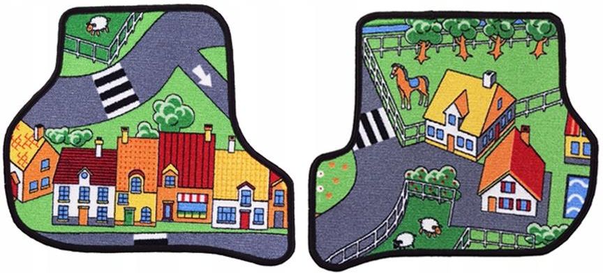 Dywaniki samochodowe welurowe tylne Ulica, 2 szt. W informacji do sprzedającego podaj model auta Dywaniki welurowe samochodowe o oryginalnym, nieszablonowym wzorze. Wykładzina przedstawia: zabudowę wiejską z drogami domki ronda owce szpital oraz wiele innych elementów Wspaniałe dywaniki dla dużych …
