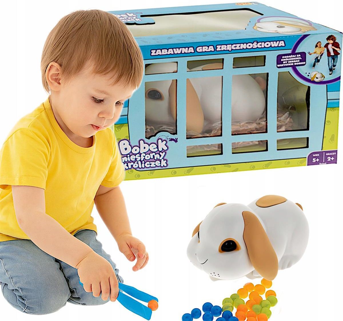 Gra Zręcznościowa Bobek – Niesforny Króliczek Wyobraź sobie radość Twojego dziecka, kiedy ściga się z przyjaciółmi, zbierając kolorowe bobki! "Bobek – Niesforny króliczek" to gra zręcznościowa, która dostarcza niezapomnianych emocji i świetnej zabawy. Odkryj nowy wymiar domowych imprez, gdzie każdy ruch może przynieść zwycięstwo lub... niespodziankę! Zręczność i refleks: Gra rozwija zdolności manualne i szybkie myślenie u dzieci. Różnorodność trybów: Dwa poziomy prędkości pozwalają dostosować rozgrywkę do wieku graczy. Kolorowa rywalizacja: Zbieranie bobków w czterech kolorach wprowadza element strategii i planowania. Zabawa dla całej rodziny: Idealna na rodzinne wieczory i przyjęcia dla dzieci. Bezpieczne materiały: Wszystkie elementy wykonane są z bezpiecznych i trwałych materiałów. Wyobraź sobie, jak Twój pięciolatek z uśmiechem na twarzy ściga się po pokoju, próbując zebrać jak najwięcej bobków. "Bobek – Niesforny króliczek" to nie tylko gra, ale i sposób na budowanie wspomnień pełnych śmiechu i zdrowej rywalizacji. Dzięki dwóm poziomom prędkości, gra jest odpowiednia zarówno dla młodszych, jak i starszych dzieci, zapewniając im wyzwanie odpowiednie do ich umiejętności. W zestawie znajdziesz elektronicznego króliczka, 32 kuleczki imitujące bobki oraz pęsety i woreczki dla każdego gracza. Gra przeznaczona jest dla 2-4 uczestników i gwarantuje emocjonujące rozgrywki w gronie rodziny czy przyjaciół. Materiały użyte do produkcji tej gry są nie tylko bezpieczne dla dzieci, ale także łatwe do utrzymania w czystości, co sprawia, że zabawa jest nie tylko wspaniała, ale i wygodna. FAQ Czy gra jest odpowiednia dla dzieci poniżej 5 roku życia? Gra jest zalecana dla dzieci od 5 roku życia ze względu na drobne elementy, które mogą stanowić ryzyko zadławienia. Jakie baterie są potrzebne do działania gry? Do działania gry potrzebne są 3 baterie AAA 1,5V, których nie ma w zestawie. Ile osób może jednocześnie grać w tę grę? Gra jest przeznaczona dla 2-4 graczy, co czyni ją idealną na spotkania z przyjaciółmi i rodziną. Odkryj nową jakość zabawy z Bobkiem – Niesfornym Króliczkiem! Dodaj tę ekscytującą grę do swojej kolekcji i ciesz się godzinami radości i śmiechu. Zamów teraz i poczuj różnicę!