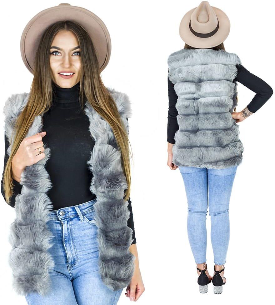 Futrzana kamizelka Ciepły bezrękawnik Szary Kielce