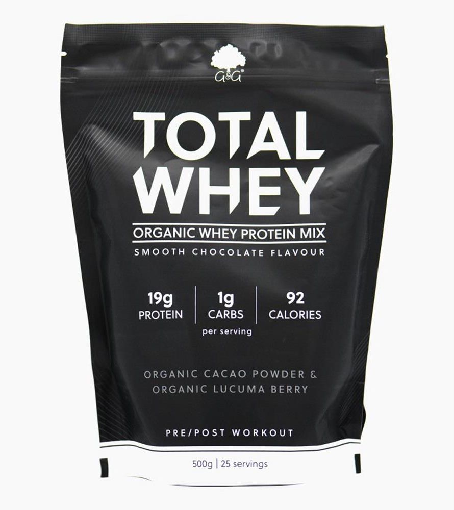 G&G Total Whey Ekologiczna Moc Białka z Serwatki, 500 gNasz produktTotal Whey - Ekologiczna Moc Białka z Serwatki - Czekoladowa Rozkoszto pochodzący z serwatki ekologiczny proszek białkowy. Produkt jest wytwarzany z 100% naturalnych składników dzięki czemu zapewnia najlepszą jakość. Total Whey łączy tylko trzy składniki: ekologiczną serwatkę, ekologiczną lucumę i ekologiczne kakao. Dodanie lucumy i kakao sprawia; że uzyskiwany jest " gładki" smak czekolady.Co wyróżnia ekologiczne Biał