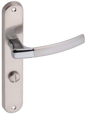 Klamka do drzwi wewnętrzna szyld długi WC lewy chrom nikiel szczotkowany Klamka jest wyposażona w mechanizm blokujący, co pozwala na jej montaż w drzwiach łazienkowych. Produkt został wykonany z chromu i niklu szczotkowanego, co nadaje mu atrakcyjny wygląd. Dzięki szorstkiej strukturze rękojeści i …