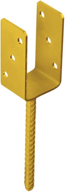 Podstawa słupa - kotwa do betonu PS typ U - cynk żółty Podstawa słupa typu "U" pozwala na montaż elementów drewnianych z betonem. Zapewnia odpowiednią dylatację drewna od podłoża. Metalowa kotwa do betonu otrzymała Europejską Aprobatę Techniczną o numerze ETA 14/0425. Posiada żebrowany pręt o dużej średnicy i jest pokryta cynkiem ogniowym. Ma właściwości antykorozyjne oraz wysoką odporność na działanie wilgoci. Kotwy do słupów wkręcane do betonu "U" możesz pomalować farbą przeznaczoną do cynkowanych powierzchni. Dane techniczne Ilość: 1 szt. Materiał: S235 + ocynk galwaniczny złoty Ochrona antykorozyjna: Cynk galwaniczny złoty: Powłoka cynku galwanicznego o grubości 12 μm. Wyroby pokryte taką powłoką przeznaczone są do użytkowania w pomieszczeniach suchych z możliwością okresowego narażenia na wilgoć (druga klasa użytkowania wg PN-EN 1995-1-1:2010). Ochrona antykorozyjna produktów jest zwiększona dzięki pasywacji chromowej w kolorze złotym. Wymiary: - 61x120x60x4,0 mm - 71x120x60x4,0 mm - 81x120x60x4,0 mm - 91x120x60x4,0 mm - 101x120x60x4,0 mm - 121x120x60x4,0 mm - 141x120x60x4,0 mm - 151x120x60x4,0 mm - 161x120x60x4,0 mm Mocowanie Drewno: - CTO ⌀10 - PWD ⌀10 - Zestaw PNP