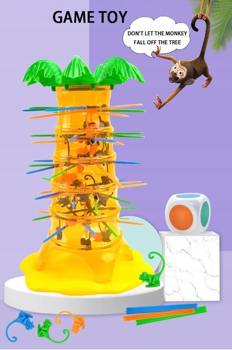 GRA ZRĘCZNOŚCIOWA RODZINNA SPADAJĄCE SKACZĄCE MAŁPKI BIERKI EDUKACYJNA GRA ZRĘCZNOŚCIOWA RODZINNA SPADAJĄCE MAŁPKI BIERKI Spadające małpki to świetna gra zręcznościowa, która wpływa na rozwój koordynacji, pomysłowości, logicznego myślenia. Zapewnia wiele godzin wspaniałej zabawy i rozrywki. Jest idealną grą rodzinną jak również podczas spotkań z przyjaciółmi. Uczy koncentracji, sprytu i logicznego myślenia. Liczba graczy 2-4. Zasady gry Składamy palmę i wsuwamy różnokolorowe patyczki w drzewo, tak aby krzyżowały się wewnątrz Wrzucamy małpki do środka drzewka, przez jego górną część. Małpki podczas spadania zaczepiają się ogonem o drzewo. Rzut kostką decyduje o kolejności ,kolor na kostce wyznacza kolor patyczka, który gracz musi wyciągnąć W każdej rundzie gracz musi ostrożnie wysunąć patyczek w odpowiednim kolorze, aby nie spadła przy tym żadna małpka Grę wygrywa gracz, który po usunięciu wszystkich patyczków,ma najmniej małpek. Produkt zapakowany w ładny, kolorowy karton. Zestaw zawiera 30 małpek 30 patyczków 1 wierzchołek drzewa 1 podstawa 1 pień 1 kostka Specyfikacja Wymiar drzewka: 27 cm Liczba graczy: 2-4 Wiek: 3+ Dodatkowe elementy oraz kolorystyka w zabawce mogą się nieznacznie różnić od tych pokazanych na zdjęciu.