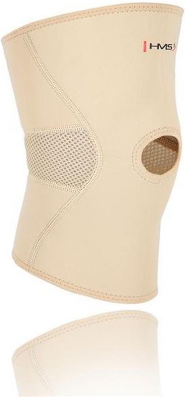 Ściągacz na kolano producenta HMS to elastyczny i komfortowy produkt przeznaczony do działań profilaktycznych, jak i kuracji w przypadku problemów z kolanem. Ściągacz został wykonany z bezpiecznych dla skóry materiałów takich jak: neopren (85%) oraz poliester (15%). Rozciągliwość materiału wynosi 1,5 cm. Produkt przeznaczony jest do wzmocnienia i utrzymania optymalnej biomechaniki stawu kolanowego. Ściągacz na kolano występuje w kilku rozmiarach dlatego każdy użytkownik znajdzie odpowiedni dla siebie, który dopasuje się do kształtu nogi, nie wywołując dyskomfortu ani nadmiernego ucisku. Materiał przylega do kolana, umożliwiając wykonywanie zwykłych aktywności. W jego przedniej części wykonane jest specjalne wycięcie, które stabilizuje rzepkę. Szczególnie polecany jest aktywnym sportowcom, a także osobom po zmianach przeciążeniowych, urazach i artretyzmie. Ściągacz dostępny jest w neutralnym kolorze beżowym.