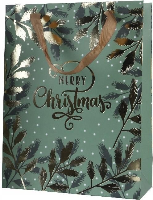 Torba prezentowa świąteczna 32cm ➡️Torebka świąteczna ze złotym napisem Merry Christmas. Idealna do pakowania różnej wielkości upominków świątecznych. Wykonana z wysokiej jakości papieru, dzięki czemu jest bardzo wytrzymała. Torebka stanowi opakowanie ekologiczne, ponieważ można ją wykorzystać wielokrotnie. ⭐ Dlaczego musisz ją mieć? ⭐Jej elegancka forma sprawia, że wygląda nietuzinkowo i wyjątkowo! ⭐Uniwersalny rozmiar sprawdzi się do wielu prezentów. ⭐Złoto-metaliczny napis i liście na torbie mienią się w świetle. ⭐Dodaj magii świąt razem z elegancką torbą prezentową! Parametry: ✔️Marka: Kaemingk ✔️Kolor dominujący: Zielony ✔️Materiał wykonania: Papier ✔️Przeznaczenie: Torba na prezent ✔️Wymiary: 10 x 26 x 32 cm Cena dotyczy jednej sztuki