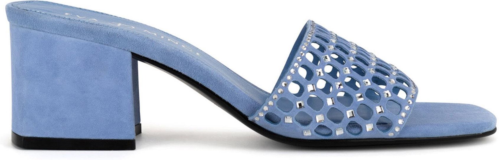 Klapki marki Eva Minge to doskonały wybór dla każdej kobiety, która pragnie połączyć elegancję z komfortem. Wykonane z wysokiej jakości skóry, te niebieskie klapki wyróżniają się na tle innych dzięki efektownym ozdobom, takim jak dżety i cyrkonie, które dodają im wyjątkowego blasku. Obcas typu …