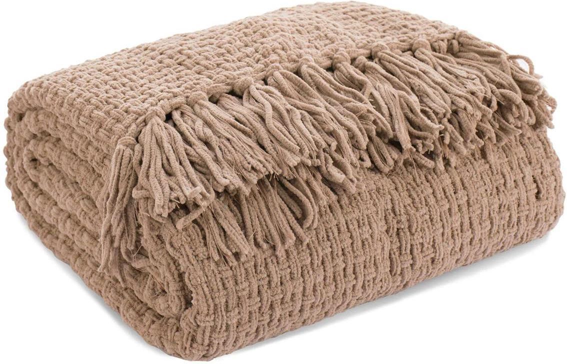 Koc Suzi 130x170 z frędzlami ciemnobeżowy Eurofirany Kielce