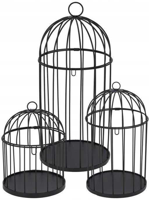Zestaw 3 ozdobnych klatek czarne metalowe różne wielkości Dodaj elegancji i charakteru swojemu wnętrzu dzięki zestawowi trzech dekoracyjnych klatek w kolorze czarnym. Wykonane z metalu o subtelnym połysku, klatki doskonale wpisują się w styl rustykalny, klasyczny lub loftowy. Ich zróżnicowane …