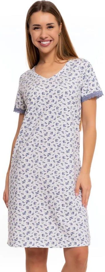 Koszula Damska Nocna Piżama DROBNE KWIATUSZKI Modna Bawełniana Krótki Rękaw MORAJ Luźna i wygodna damska koszula w kolorze złamanej bieli w niebieskie, drobne kwiatuszki, która zapewnia komfort i styl podczas snu. Ponadczasowy design: Koszula nocna w uroczy wzór drobnych kwiatuszków wykończona koronką dodaje jej wyjątkowego charakteru. Komfortowy materiał: Wykonana z miękkiej, przewiewnej tkaniny, która zapewnia wygodę i komfort podczas snu. Krótki rękaw: Idealna na cieplejsze noce, pozwala skórze oddychać i zapewnia swobodę ruchów. Praktyczny krój: Luźny, wygodny fason nie krępuje ruchów, zapewniając spokojny i relaksujący sen. Łatwa pielęgnacja: Koszula nocna jest łatwa do prania i utrzymania w czystości, co sprawia, że jest praktyczna w codziennym użytkowaniu. Uniwersalność: Doskonała na każdą noc oraz idealna na prezent dla bliskiej osoby, która ceni wygodę i styl. Skład materiałowy 95% bawełna 5% elastan