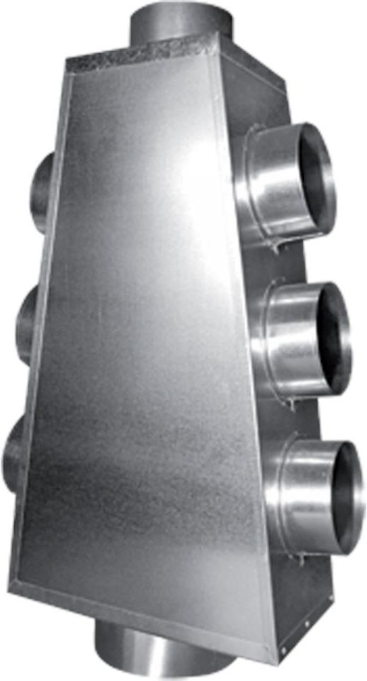 Rozdzielacz fi 150/7x125 NAPISZ LUB ZADZWOŃ! DORADZIMY TECHNICZNE I NA PEWNO OSIĄGNIEMY KOMPROMIS CENOWY Rozdzielacz wykorzystywany jest m.in. do rozdzielenia strumienia gorącego powietrza płynącego z kominka. ZALETY Rozdzielacz jest częścią systemu DGP lub systemu wentylacyjnego. Wykorzystywany jest, np. do rozdzielenia strumienia gorącego powietrza płynącego z kominka. Charakterystyka: - średnice króćców: 7x fi 125 - średnica wejścia: fi 150 - element zgrzewany punktowo - materiał: blacha ocynkowana galwanizowana - grubość blachy: 0,5 mm
