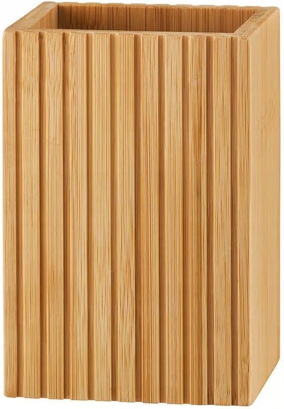 Przydatny w każdej łazience. Pomaga utrzymać porządek na umywalce. Wykonany z drewna bambusowego. Posiada pionowe dekoracyjne żłobienia, które sprawiają że będzie oryginalnym dodatkiem. Idealny kubek na szczoteczki i pastę. Wykonany z drewna bambusowego Oryginalne żłobienia
