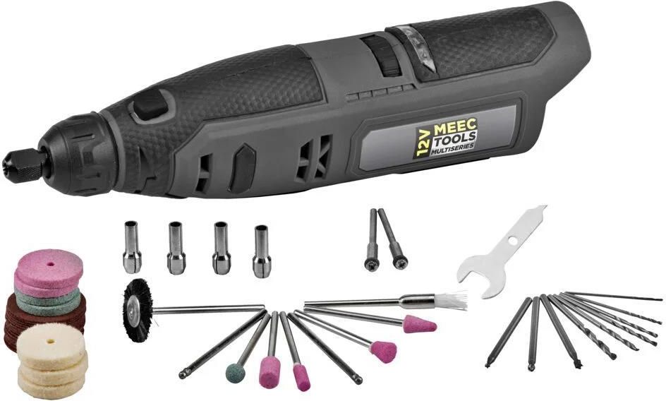 Szlifierko-grawerka z wieloma akcesoriami!Stwórz coś wyjątkowego przy pomocy tej zasilanej akumulatorowo szlifierko-grawerki marki Meec Tools. Narzędzie to pozwoli Ci tworzyć własną biżuterię lub dekorować różne przedmioty, takie jak puszki, etui na telefony czy kubki. W zestawie aż 50 akcesoriów, stwarzających nieskończone możliwości wykreowania czegoś unikalnego.Różne prędkościTo uniwersalne narzędzie ma łącznie sześć prędkości oraz tryb maksymalny i obraca się z prędkością 5000–25 000 obrotów na minutę. Umożliwia to zachowanie precyzji podczas pracy i osiągnięcie wyjątkowo efektownych rezultatów.Bezprzewodowa – pełna swoboda ruchówBezprzewodowa konstrukcja zapewnia zachowanie pełnej swobody ruchów. Niska masa na poziomie 450 gramów zapobiega szybkiemu męczeniu ramienia i pozwoli Ci długo rozwijać Twoją kreatywność.AkcesoriaAż 50 akcesoriów sprawia, że nigdy nie poczujesz ograniczeń. Dołączone akcesoria to: 6 wierteł HSS 2 punktaki 3 tarcze polerskie 4 tarcze szlifierskie szczotka do metalu Tarcze tnące, 16 szt. 5 zbiorczych uchwytów szczękowych 2 szczotki syntetyczne 3 frezy 2 końcówki grawerskie 5 końcówki szlifierskie klucz łączony Meec Tools Multiseries 12 VProdukt należy do serii Meec Tools Multiseries 12 V – linii akumulatorowych urządzeń przeznaczonych do wykonywania mniejszych prac w domu. Narzędzia mają praktyczny kształt, który umożliwia używanie tego samego akumulatora i ładowarki do wszystkich produktów z serii. Akumulator i ładowarka do kupienia osobno.