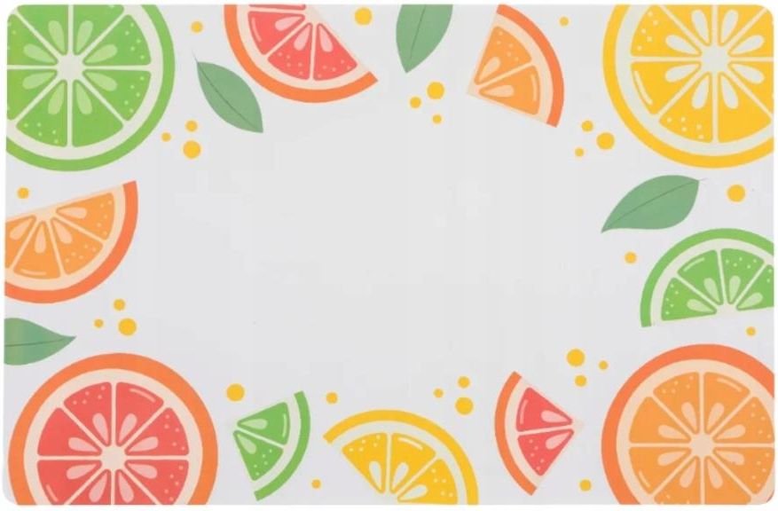 Podkładka na stół prostokątna 28x43 cm mata PCV w letni owocowy wzór Wprowadź do swojej jadalni letni klimat dzięki tej oryginalnej macie Tropicana. Wzór z cytrusami ożywia wnętrze, a trwałe tworzywo skutecznie chroni blat przed zabrudzeniami i zarysowaniami. Ta podkładka to idealne połączenie …