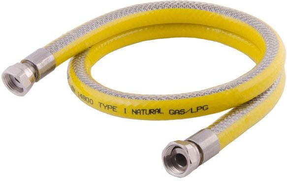 Przewód gazowy z dwoma nakrętkami obrotowymi G½”. Uniwersalny przewód instalacyjny do wszystkich odbiorników gazu, zakończony dwoma obrotowymi nakrętkami. Nakrętki mosiężne niklowane z gwintem G1/2 wg. PN-EN ISO 228-1. Dzięki takiej konstrukcji unika się niebezpieczeństwa skręcenia przewodu, wskutek niewłaściwego montażu. Możliwość dokręcenia dowolnej wymaganej kształtki. Długości: 0,50 m; 0,75 m; 1,00 m; 1,25 m; 1,50 m oraz 2,00 m. Metalowy elastyczny przewód do gazu, wykonany ze stali nierdzewnej typu 304L, w oplocie z drutu ze stali nierdzewnej 304 w ochronnej powłoce z PCV. Przewód wykonany zgodnie z normą PN-EN 14800 - typ 1 o nieograniczonym promieniu zginania. Posiada nakrętki z gwintem G1/2 z obu stron – zgodnie z normą PN-EN ISO 228-1. Połączenia doszczelnia się doczołowo przy pomocy uszczelek z NBR. Przewody "e-GAZ 111A" są odpowiednie do stosowania w miejscach objętych przepisami dotyczącymi reakcji na ogień. Klasa ogniowa: d- s2, d0 Przewód karbowany wewnętrzny:DN 12 - stal nierdzewna AISI 304L Oplot:DN 12 - stal nierdzewna AISI 304 Króciec:DN 12 - stal nierdzewna AISI 304 Nakrętka obrotowa:G1/2” - mosiądz niklowany Pierścień zaciskowy:DN 12 - stal nierdzewna AISI 304 Powłoka ochronna:Przewód PCV w kolorze żółtym i przeźroczystym Uszczelka:NBR wg. EN 549 Maksymalne ciśnienie robocze (MOP):0,5 bar Odporność na ogień:650 ºC przez 30 min. Certyfikat Zgodności Nr 0085-CPR-BU0356. Deklaracja Właściwości Użytkowych Nr 3/305/PROFI/2017