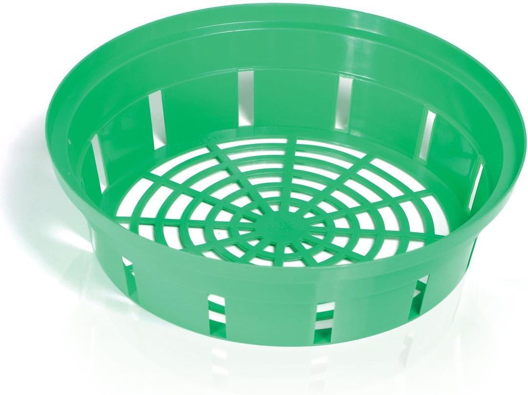 Koszyk na cebulki ONION 31,5 cm Onion II to wariant sprawdzonego koszyka Onion, dzięki konstrukcji umożliwia ułożenie kilku pojemników jeden na drugim, co pozwala na oszczędność miejsca przy przechowywaniu cebulek czy sadzonek. Średnica 31,5cm, wysokość 5,5cm, kolor zielony leśny.