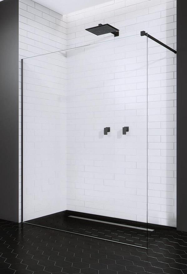 RADAWAY Modo X Black II kabina prysznicowa Walk-In 65 cm Stylowa kabina prysznicowa typu walk-in RADAWAY Modo X Black II zbudowana z pojedynczej tafli bezpiecznego szkła hartowanego i profili w czarnym kolorze Wariant produktu: Kolor szkła: UltraClear Szerokość: 65cm Grubość szkła: 10mm Kolor …
