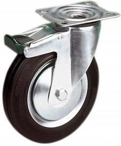 Zestaw skrętny koło obrotowe skrętne z hamulcem stalowo-gumowe 80 mm Zestaw kołowy oferuje solidne rozwiązanie do różnych zastosowań, wyposażone w koła CSG z oponami gumowymi. Mocowanie wykonane jest z tłoczonej blachy stalowej ocynkowanej, co zapewnia trwałość i odporność na korozję. W głowicy skrętnej zastosowano podwójne łożyskowanie kulkowe z uszczelnieniem oraz hamulec całkowity, co zapewnia płynność ruchu i stabilność. Koła charakteryzują się czarnymi, pełnymi gumowymi oponami oraz stalowymi piastami z tłoczonej blachy, wyposażonymi w łożyska wałeczkowe, co zapewnia wytrzymałość i niezawodność. Zalety Solidna konstrukcja: Mocowanie z tłoczonej blachy stalowej ocynkowanej zapewnia trwałość i odporność na korozję. Płynność ruchu: Głowica skrętna wyposażona w podwójne łożyskowanie kulkowe z uszczelnieniem oraz hamulec całkowity zapewniają stabilność i płynność ruchu. Wysoka jakość materiałów: Czarne, pełne gumowe opony oraz stalowe piasty z tłoczonej blachy zastosowane w kołach gwarantują wytrzymałość i niezawodność. Uniwersalność: Zestawy kołowe są odpowiednie do różnych zastosowań dzięki solidnej konstrukcji i wysokiej jakości materiałom. Precyzyjne wykonanie: Dokładne wymiary płytki oraz rozstaw otworów ułatwiają instalację i zapewniają stabilność montażu. Łatwy montaż: Prosta instalacja dzięki standardowym wymiarom i możliwości skręcania. Parametry Ilość sprzedawana: 1 szt. Średnica koła: 80 mm Typ łożyska: Wałeczkowe Szerokość bieżni: 25 mm Wymiary płytki: 102x84 mm Rozstaw otworów: 80x60 mm Średnica otworów: 9 mm Wysokość całkowita: 105 mm Nośność: 50 kg Cena dotyczy 1 zestawu!!