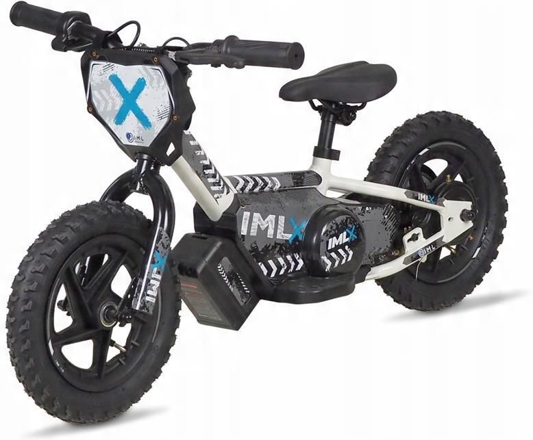 Elektryczny rowerek biegowy IML X 12” Rowerek biegowy IML X 12″ to połączenie sportowej zabawy z elektrycznym wsparciem — idealny pierwszy pojazd dla małego fana motocrossu. Dzięki lekkiej konstrukcji i dwóm trybom jazdy dziecko może rozwijać swoje umiejętności w bezpieczny sposób. Specyfikacja Waga: 9,5 kg Wymiary: 100 × 52 × 56 cm Bateria: Litowo-jonowa Bateria wyciągana: Tak Pojemność Baterii: 24V 5Ah Czas ładowania Baterii: 30 – 60 minut Maksymalny Zasięg *: 15 km Napęd: 200 W Prędkość Max: 20 km/h Masa własna: 9,5 kg Dopuszczalna ładowność: 40 kg Rozmiar Opon (Przód/Tył): 12 cali Wymiary: 1000x520x560 mm * Zasięgi podawane przez producentów są to osiągi maksymalne i w zależności od użytkowania mogą być niższe o około 10-30 %. Na realny zasięg ma wpływ pogoda, teren, prędkość jazdy oraz waga użytkownika Bezpieczna frajda IML X 12" wyposażony jest w wydajny silnik o mocy 200W, z napędem typu chain. System napędowy zapewnia płynne przyspieszenie, a jednocześnie niski poziom hałasu. Tryby jazdy pozwalają dopasować prędkość do umiejętności dziecka – od 7 do nawet 13 km/h. Napęd działa w sposób progresywny, dzięki czemu dziecko może bezpiecznie nauczyć się manewrowania i kontroli prędkości. Idealny dla najmłodszych Rowerek IML X 12" to ogromna frajda dla najmłodszych, którzy chcą poczuć się jak prawdziwi zawodnicy. Stylowy design, wyścigowy numer startowy i elektryczne wspomaganie gwarantują godziny emocjonującej jazdy. Dzięki dwóm trybom prędkości, dziecko stopniowo rozwija swoje umiejętności i pewność siebie. Idealny do ogrodu, parku czy na specjalne tory.
