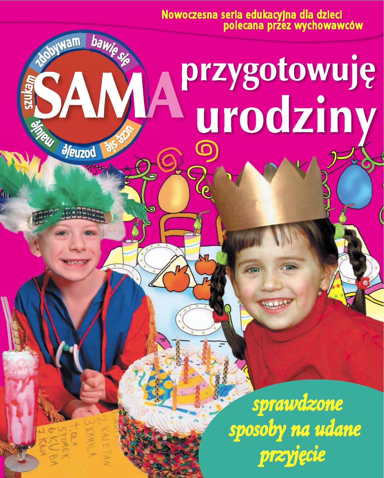 Seria SAM to 16 książek, w których specjalny nacisk położony jest na atrakcyjne przekazywanie praktycznej wiedzy, dzięki której dziecko uczy się samodzielności i aktywności. Książki wyróżnia: przystępny tekst, duża, wyraźna czcionka, duży format oraz mnóstwo kolorowych przykładów i ilustracji. Cała seria SAM uzyskała patronat magazynu dla rodziców "Twoje Dziecko", miesięcznika polecanego przez Instytut Matki i Dziecka. Chcesz zaskoczyć koleżanki i kolegów samodzielnie przygotowanym przyjęciem urodzinowym? Pragniesz dobrze wypaść w roli gospodarza? W tej książce znajdziesz wiele atrakcyjnych pomysłów i porad, by te marzenia się spełniły. To wcale nie jest trudne! Razem z nami przygotujesz zaproszenia, listę gości, udekorujesz pokój oraz przyrządzisz urodzinowe przysmaki.