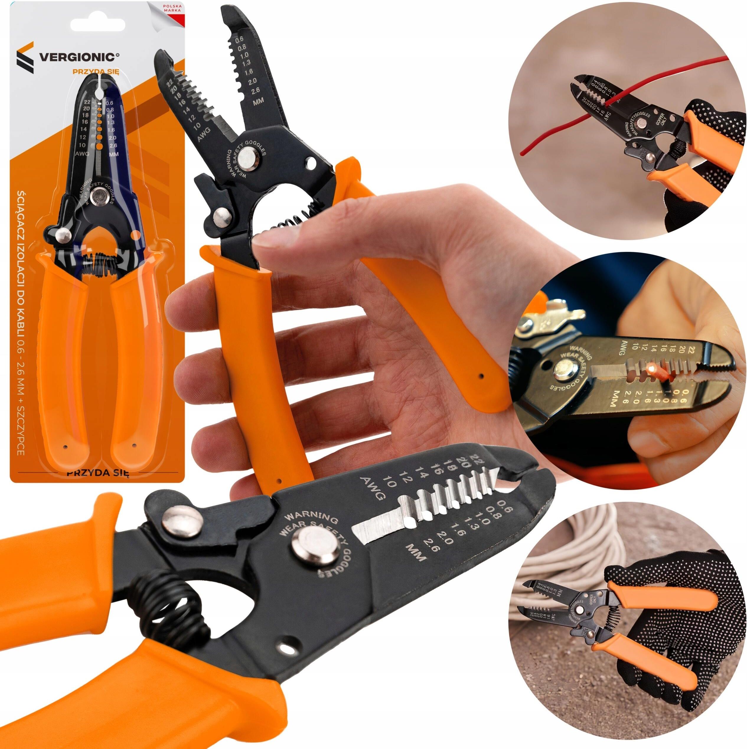 ŚCIĄGACZ IZOLACJI DO KABLI SZCZYPCE ŚCIĄGACZKA KABLI 0,6 - 2,6 mm VERGIONIC Kielce