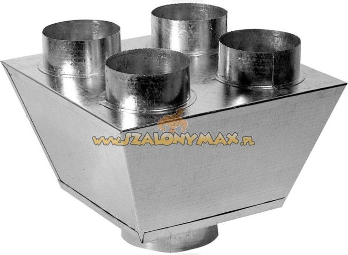 Skrzynka rozdzielacza fi 125/4x100 NAPISZ LUB ZADZWOŃ! DORADZIMY TECHNICZNE I NA PEWNO OSIĄGNIEMY KOMPROMIS CENOWY Skrzynka rozdzielacza: średnice króćców: 4x fi 100, średnica wejścia: fi 125 ZALETY Rozdzielacz jest częścią systemu DGP lub systemu wentylacyjnego. Wykorzystywany jest, np. do rozdzielenia strumienia gorącego powietrza płynącego z kominka. Charakterystyka: - średnice króćców: 4x fi 100 - średnica wejścia: fi 125 - element zgrzewany punktowo - materiał: blacha ocynkowana galwanizowana - grubość blachy: 0,5 mm