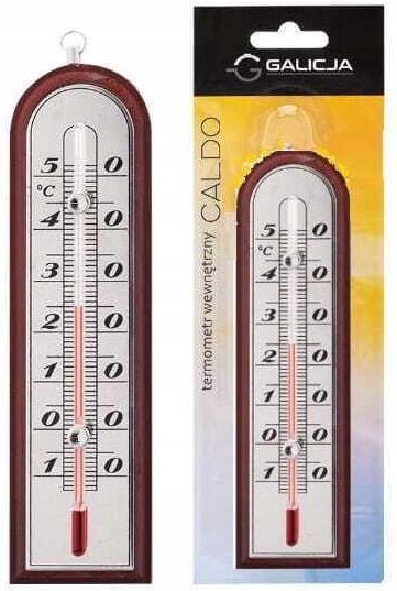 Termometr wewnętrzny pokojowy CALDO drewniany ciemny termometr wewnętrzny CALDO został wykonany z transparentnego szkła, naturalnego drewna i aluminiowej skali dobrze widoczna skala i cyfry, pozwalają na łatwe odczytanie temperatury zakres temperatur: od -10 do +50 st. C szybki i łatwy montaż, wystarczy zawiesić na małym gwoździku termometr CALDO nie zawiera rtęci kolor: naturalne ciemne drewno i aluminiowa skala wymiary: długość całkowita 15 cm, szerokość 4 cm, grubość 1,9 cm produkt marki Galicja