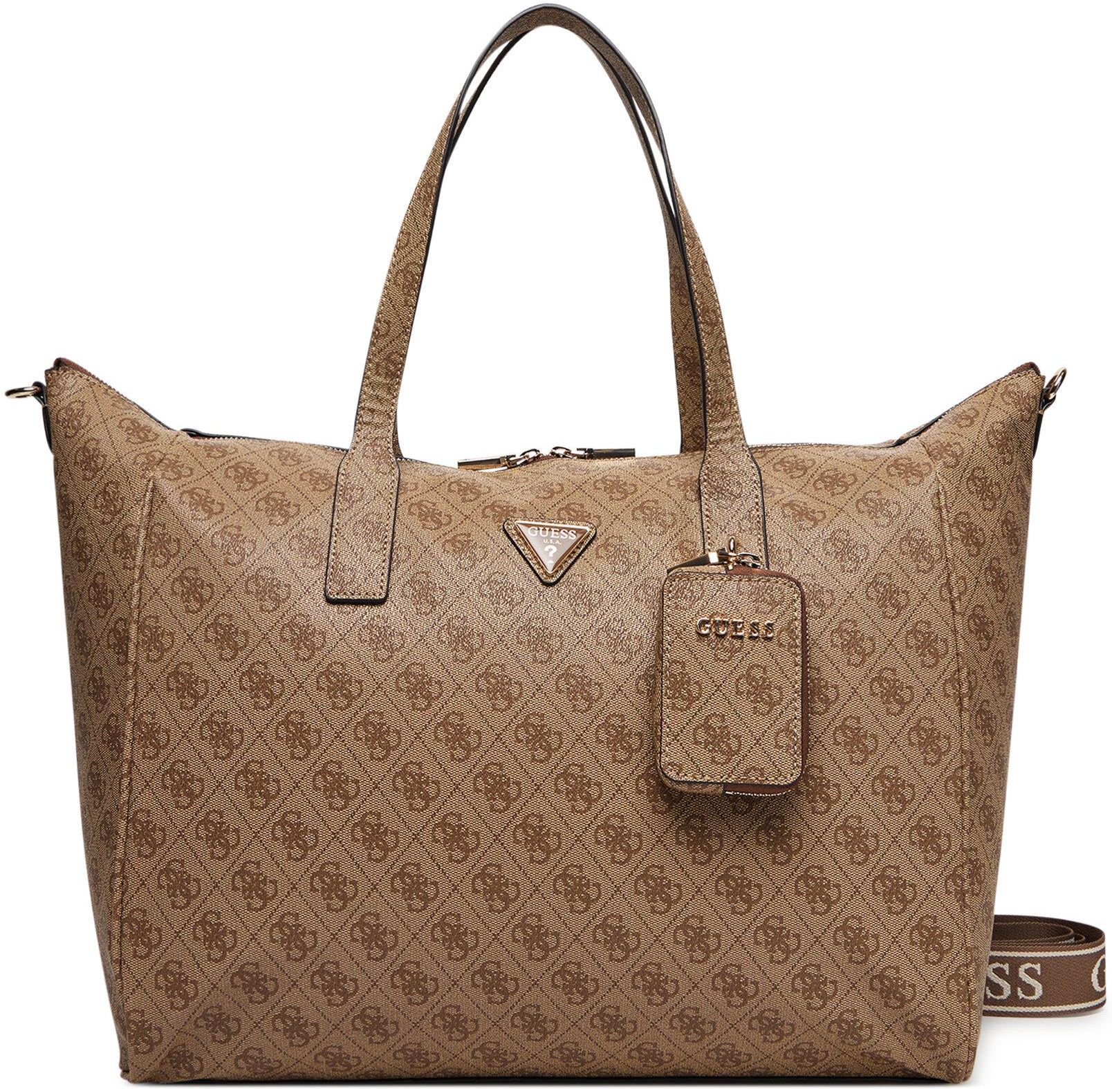 Stylowa torba weekendowa od marki Guess to idealny towarzysz każdej podróży. Wykonana z imitacji skóry, wyróżnia się twardą konstrukcją, która zapewnia trwałość i elegancki wygląd. Dzięki dopinanemu paskowi możesz nosić ją wygodnie na ramieniu lub w ręku, dostosowując sposób użytkowania do swoich potrzeb. Dodatkowo dopinana saszetka to praktyczne rozwiązanie, które pozwala na przechowywanie drobnych przedmiotów w zorganizowany sposób. To połączenie funkcjonalności i ponadczasowego stylu — idealne na każdą okazję!