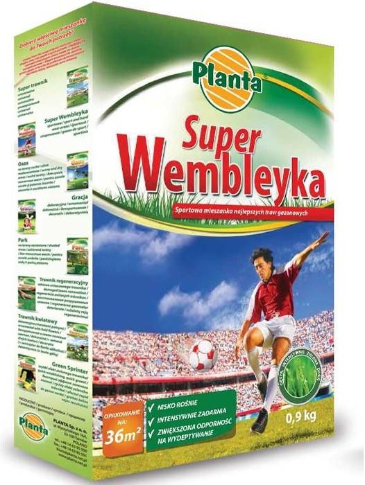 Zalety mieszanki: - nisko rośnie - intensywnie zadarnia - zwiększona odporność na wydeptywanie Sportowa mieszanka traw Super Wembleyka to jedna z najbardziej precyzyjnie dobranych mieszanek traw gazonowych przeznaczonych na boiska oraz tereny sportowe. Jej skład został opracowany przez sztab specjalistów, których celem było stworzenie ekskluzywnie wyglądającej murawy, której nie powstydziłyby się największe stadiony świata. Główną zaletą nasion trawy sportowej jest wzmożona odporność na uszkodzenia mechaniczne a także intensywne użytkowanie. Atut, który wyróżnia Super Wembleykę to bardzo szybka regeneracja trawnika. To mieszanka nasion o niskim wzroście i równomiernie intensywnym zadarnieniu. Trawa na tereny sportowe dostarcza prestiżu mejscom, w których została wysiana a jej mocno zielona barwa wzbudza podziw i przykuwa uwagę każdego. Trawę sportową można użyć również w miejscach przeznaczonych na place zabaw gdzie jej gęsta darń z powodzeniem przetrwa wzmożone wydeptywanie, wzmocni bezpieczeństwo placu oraz uchroni dzieci przed kontuzją i otarciami. Zastosowanie: - boiska i tereny sportowe - place zabaw - intensywnie użytkowany trawnik przydomowy Skład mieszanki: - Życica trwała (Lolium perenne): 66% - Kostrzewa czerwona (Festuca rubra): 8% - Kostrzewa szczeciniasta (Festuca trachyphylla): 8% - Kostrzewa trzcinowa (Festuca arundinacea): 10% - Wiechlina łąkowa (Poa pratensis): 8%