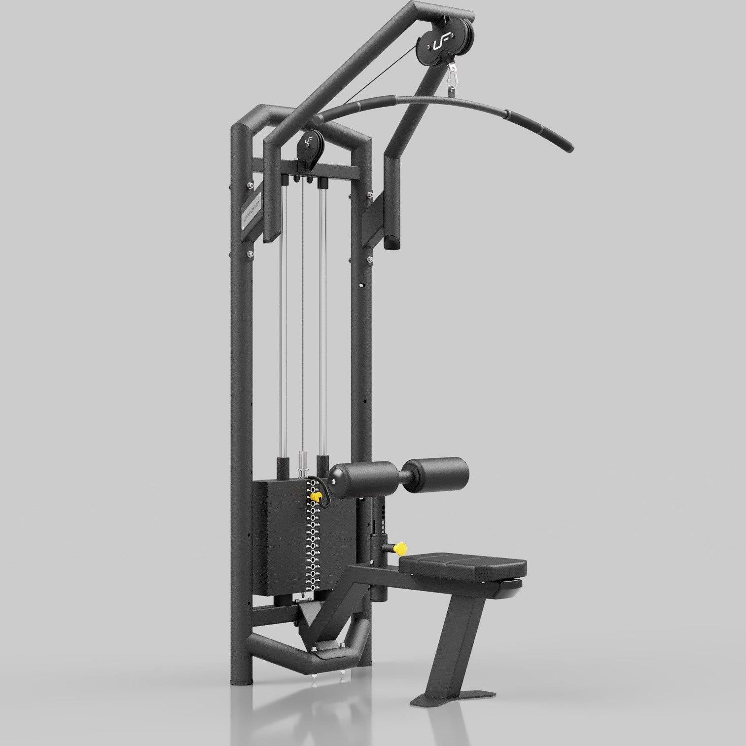 Wyciąg górny UF-003 wchodzi w skład profesjonalnego systemu modułowego UpForm, który umożliwia trening wszystkich partii mięśniowych na każdym poziomie zaawansowania ćwiczącego. UWAGA! W przypadkach gdy UF-003 będzie wykorzystywana jako samodzielna, wolnostojąca maszyna (bez połączenia z innymi sprzętami z serii F-LINE) do uzyskania pełnej stabilności konstrukcji konieczne jest jej zakotwienie w podłożu, przy pomocy odpowiednio dobranych do posiadanej powierzchni kołków mocujących. Marka UpForm to systemowe rozwiązanie skierowane dla komercyjnych siłowni i klubów fitness. Dzięki modułowej konstrukcji, sprzęt UpForm można skonfigurować według indywidualnych potrzeb oraz możliwości. Stos 120 kg Na stos stacji bramowej składa się 16 sztabek, każda o wadze 7,5 kg. Każda sztabka posiada naklejkę informującą o łącznej wadze w kilogramach oraz funtach. Uchwyt przetyczki do regulacji stosu został wykonany z aluminium, sama przetyczka jest zabezpieczona linką spiralną. Górne ramię Górne ramię maszyny wysunięte jest na wysokość 227 cm. Dzięki temu na przyrządzie będą mogły ćwiczyć także osoby o wzroście ponad 200 cm. Wszystkie kółka ukryliśmy pod metalowymi maskownicami z logo UpForm. Linki w czarnej otulinie zakończone są masywnym zaciskiem na śruby imbusowe oraz amortyzowane poprzez gumowy odbojnik. W zestawie otrzymujesz drążek szeroki o jednolitym ze stacją designie. Perforowana tapicerka Perforowana tapicerka zapewnia odpowiednią wentylację i odprowadzanie wilgoci, dzięki czemu podczas treningu tapicerka dłużej pozostaje sucha. Dane techniczne Wysokość: 2269 mm Szerokość: 1214 mm Długość: 1134 mm Waga: 223 kg Stos: 16 x 7,5 kg Przełożenie: 1:1 Maksymalne obciążenie: 120 kg Profile: 100 x 60 x 3 mm, rura 60,3 x 3,2 mm, rura 76,1 x 3,2 mm Kolor ramy: czarny Rodzaj obciążenia: stos Kolor tapicerki: czarny Kod produktu: 1007565