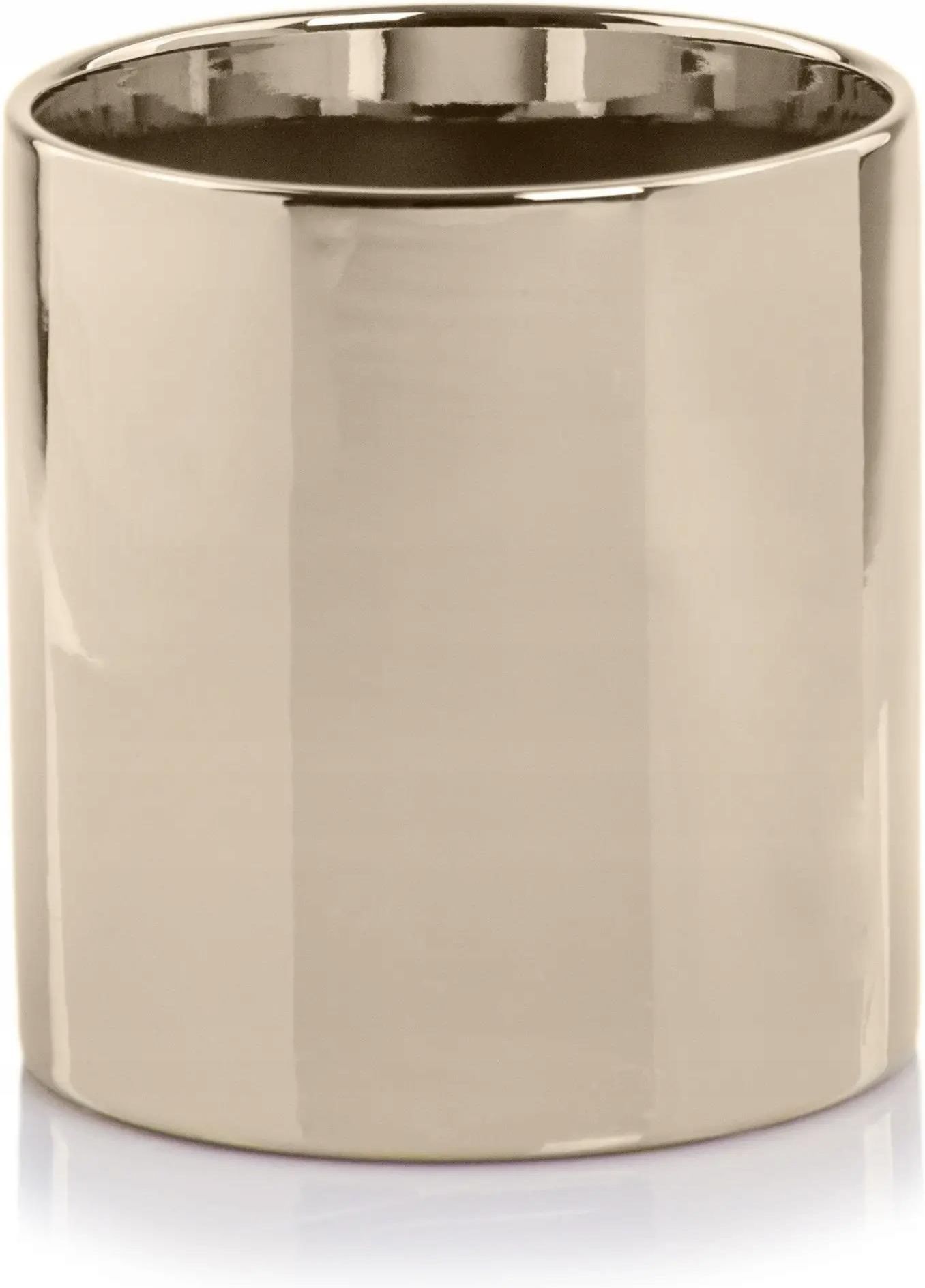 Złota Osłonka Ceramiczna - Walec 8x8 cm Artykuł wykonany jest z ceramiki cienkościennej i jest wykończony wysokiej jakości szkliwem lustrzano-złotym. Gładka powierzchnia dzięki procesowi galwanizacji Dzięki procesowi galwanizacji powierzchnia produktu jest gładka i jak lustro odbija otoczenie. …
