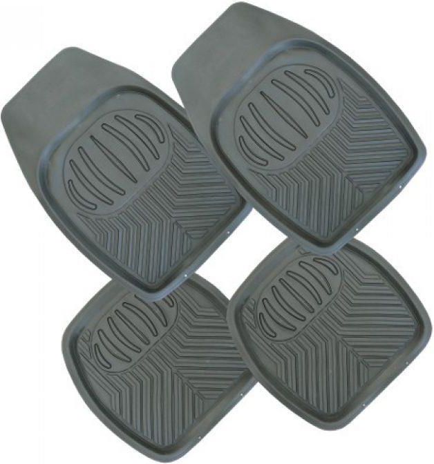 4x Dywaniki Samochodowe Gumowe Uniwersalne do Auta •Zestaw czterech dywaników do samochodu. •Chronią podłoże przed wilgocią. •Dywaniki są wykonane z gumy wysokiej jakości i nie wydzielają nieprzyjemnego zapachu. •Każdy z dywaników posiada podniesiony próg blokujący wodę i zanieczyszczenia. •Każdy z …
