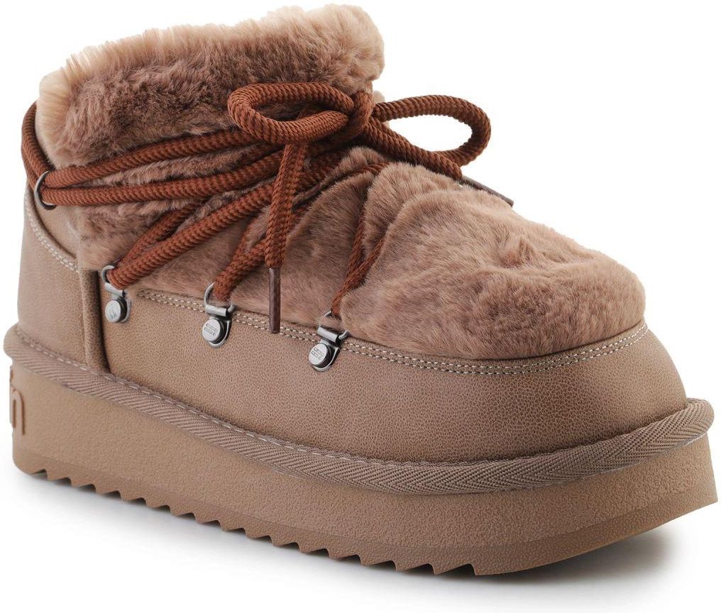 D.Franklin buty śniegowce damskie zimowe modne futerko ocieplane brązowe Buty zimowe dla kobiet Damskie stylowe buty inspirowane fenomenem après-ski marki D.Franklin. Cholewka wykonana z najwyższej jakości materiałow tekstylnych, którą warto przed użyciem zaimpregnować, aby buty posiadały dodatkową ochronę przed wilgocią. Wykonane z materiałów wegańskich zatwierdzonych przez PETA , podszewka wykonana w 30% z materiałów pochodzących z recyklingu (Global Recycled Standard). Buty ocieplane futerkiem, gwarantują ciepło nawet w bardzo niskich temperaturach. Wykorzystany w obuwiu system sznurowania zapewnia idealne dopasowanie do stopy. Gruba, w pełni amortyzowana podeszwa zewnętrzna chroniąca przed mrozem. Idealne obuwie do każdej modnej stylizacji. Zimowe śniegowce marki D.Franklin. Buty D.Franklin Nordic to idealne połączenie modnego designu i funkcjonalności. Inspirowane stylem outdoorowym, zapewniają komfort w codziennym użytkowaniu oraz świetnie sprawdzają się w jesienno-zimowych warunkach.