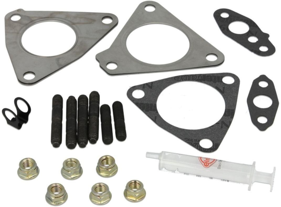Zestaw montażowy turbosprężarki ELRING 733.860 Specyfikacja techniczna z uszczelnieniami, z instrukcją montażu, ze śrubami dla numeru OE: 14411-2W203, 724639-5007S, 724639-5006S, 724639-0006, 724639-0004, 724639-0002, 705954-0017, 705954-0016, 705954-0015, 705954-0013, 14411-2W204, 14411-2X900, …