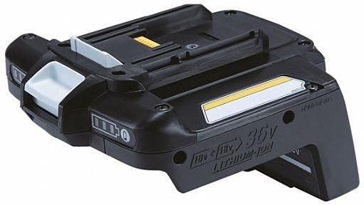 Konwerter akumulatorów z 2x18V na 36V Makita 196809-7 to urządzenie, które umożliwia wykorzystanie dwóch akumulatorów 18V do narzędzi o większej mocy - wtedy można je wykorzystać do urządzeń zasilanych akumulatorem 36V. Charakterystyka produktu: Użytkownicy, którzy posiadają dwa akumulatory 18 V mogą dzięki konwerterowi korzystać z urządzeń 36 V Kompatybilny z: BL1815N, (18V/1.5Ah), BL1820 (18V/2.0Ah), BL1830 (18V/3.0Ah), BL1840 (18V/4.0Ah), BL1850 (18V/5.0Ah) Dane techniczne: Napięcie akumulatora: 18 V Typ ogniwa: Li-Ion
