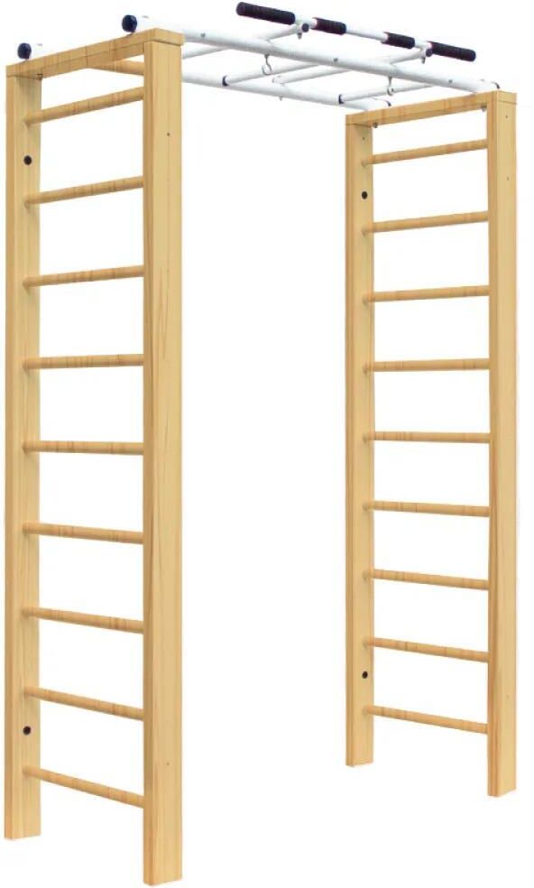 Drabinka gimnastyczna Luna ELEMENTY ZESTAWU drewniana drabinka gimnastyczna - 2 szt. drabinka pozioma drążek metalowy WAZNE Zestaw przeznaczony dla dzieci od 3 lat i dorosłych Dopuszczalne obciążenie drabinki i drążka: 120 kg Wymiary zestawu: 75 x 151 x 233 cm Montaż: przyścienny Kolorystyka: biały, drewno Zalecenia producenta: dzieci od 3 do 7 lat powinny ćwiczyć tylko pod nadzorem rodziców