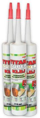 MARBET TITAN SUPER Klej Uniwersalny Montażowy 520g Śnieżnobiały klej o konsystencji pasty, nie zawiera w składzie rozpuszczalnika, bardzo dobra przyczepność. WŁAŚCIWOŚCI śnieżnobiały płynny gwóźdź bardzo dobra przyczepność wydajność ok 16 mb z kartusza przy zachowaniu ścieżki 5 mm temperatura pracy …