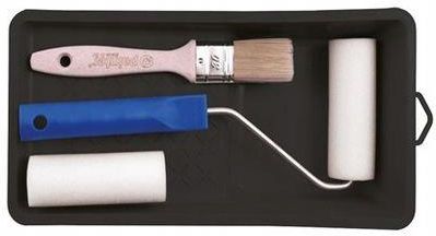 PAINTER Zestaw malarski gąbka 10cm+zapas+pędzel Zestaw zawiera gąbkę "Farby olejne" 10cm rączkę do wałka kuwetę malarską zapas pędzel Zestaw malarski: gąbka 10cm+zapas+pędzel